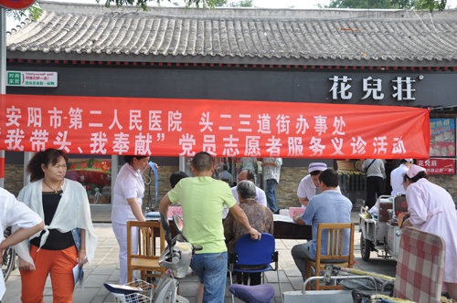 7月1日,為積極響應市委組織部通知精神,要求在職黨員開(kāi)展“我帶頭、我奉獻”黨員志愿者服務(wù)。我院結合“兩學(xué)一做”實(shí)踐活動(dòng),為展示醫院全體黨員學(xué)習教育成效,醫院內科組織黨員與頭二三道街辦事處南一道社區在文峰區二道街口開(kāi)展義診踐行“兩學(xué)一做”活動(dòng)。我院黨委書(shū)記盧占軍、副院長(cháng)李敬旭親臨現場(chǎng)指導。此次活動(dòng)有神經(jīng)內科、心內科、兒科、中西醫結合科等一行15人?,F場(chǎng)氣氛活躍,組織井然有序。