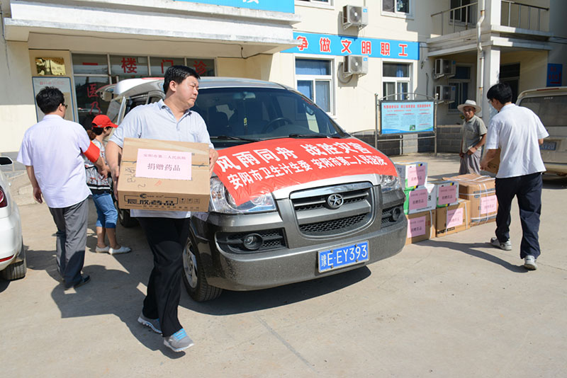 7月26日,在市衛計委統一部署下,我院院長(cháng)裴海青、黨委書(shū)記盧占軍、副院長(cháng)張志勇分別帶領(lǐng)兩支救災小分隊,奔赴安陽(yáng)縣磊口鄉和林州市東崗鎮兩個(gè)受災嚴重的地區,捐送了災區人民急需的醫療物資和生活物資,其中藥品價(jià)值9000元,其它物資價(jià)值6000元。在當地衛生院,我院領(lǐng)導認真聽(tīng)取了衛生院領(lǐng)導的災情介紹及已經(jīng)開(kāi)展的救災措施,對受災群眾表示親切慰問(wèn),并當即表示,如若在醫療服務(wù)方面需要后續支援醫院將義不容辭的給予支持。