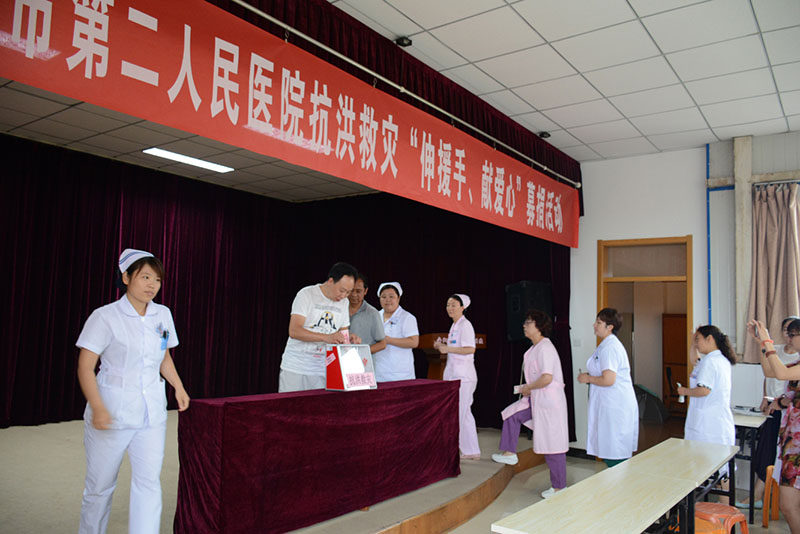 7月19日,我市遭遇特大暴雨襲擊并引發(fā)洪澇災害,部分群眾生命財產(chǎn)遭受重大損失,生產(chǎn)、生活受到嚴重影響。災情發(fā)生后,我院黨委高度重視,黨委書(shū)記盧占軍主動(dòng)請示市衛計委參與救災行動(dòng),并立即啟動(dòng)相關(guān)預案程序。要求醫院各黨支部要發(fā)揮好戰斗堡壘作用,廣大黨員要發(fā)揮好模范帶頭作用,時(shí)刻聽(tīng)從黨召喚,以實(shí)際行動(dòng)踐行“兩學(xué)一做”,在抗洪救災的關(guān)鍵時(shí)刻和危難之際當先鋒、做表率。