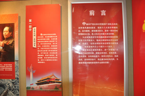 檢察院教育基地設三個(gè)展廳,8個(gè)部分,講述了建黨以來(lái)我黨我國反腐歷程,1949年毛澤東同志在迎接新中國成立的中共七屆二中全會(huì )上高瞻遠矚指出“可能有這樣一些共產(chǎn)黨人,他們是不曾被拿槍的敵人征服過(guò)的,他們在敵人面前不愧英雄的稱(chēng)號;但是經(jīng)不起人們用糖衣裹著(zhù)的炮彈的攻擊,他們在糖彈面前要打敗仗,我們必須預防這種情況。”1952年2月10日打響了建國以后共和國反腐第一槍?zhuān)泄蔡旖虻匚瘯?shū)記劉青山、專(zhuān)員張子善因貪污被執行死刑,從此拉開(kāi)了反腐序幕,展現了中國共產(chǎn)黨反腐的決心。