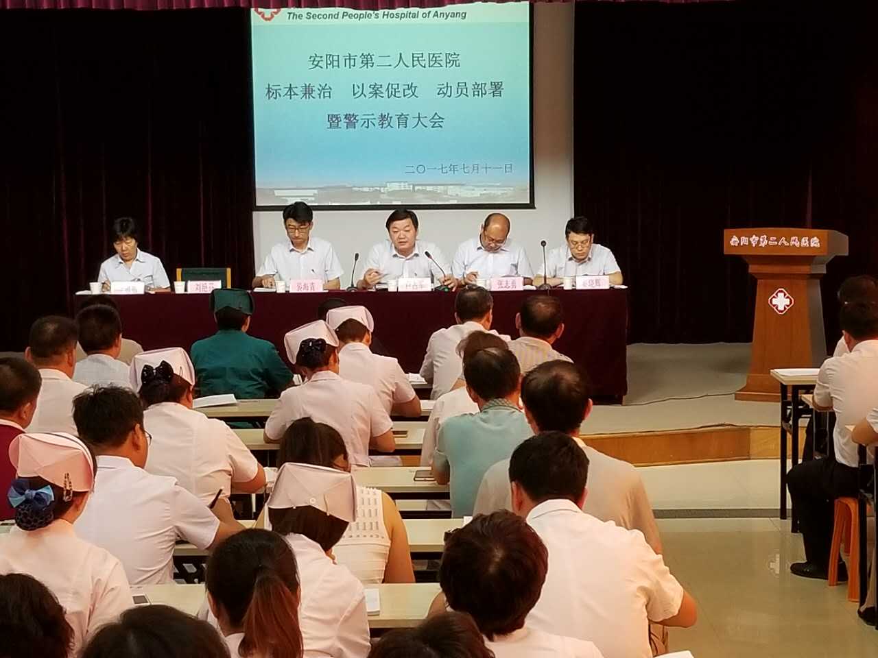 2017年7月11日下午,在我院大會(huì )議室召開(kāi)“標本兼治以案促改動(dòng)員部署暨警示教育大會(huì )”,黨委書(shū)記盧占軍、院長(cháng)裴海青、副院長(cháng)張志勇、副院長(cháng)李敬旭、院長(cháng)助理秦曉輝和全體中層干部參加會(huì )議。