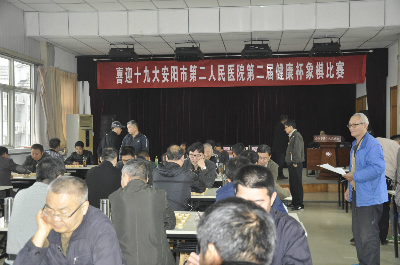 安陽(yáng)市第二人民醫院黨委書(shū)記盧占軍致開(kāi)幕詞。首先盧書(shū)記代表我院對各位棋牌協(xié)會(huì )領(lǐng)導、裁判員和參賽者的到來(lái)表示熱烈歡迎,之后又對我院概況和新院建設做了介紹,最后,盧書(shū)記用“斗智斗勇斗膽斗識不斗氣,贏(yíng)藝贏(yíng)技贏(yíng)巧贏(yíng)妙不贏(yíng)賭”來(lái)預祝本次象棋比賽取得圓滿(mǎn)成功。出席本次活動(dòng)的還有安陽(yáng)市棋牌協(xié)會(huì )會(huì )長(cháng)趙福生和裁判長(cháng)盧愛(ài)清。