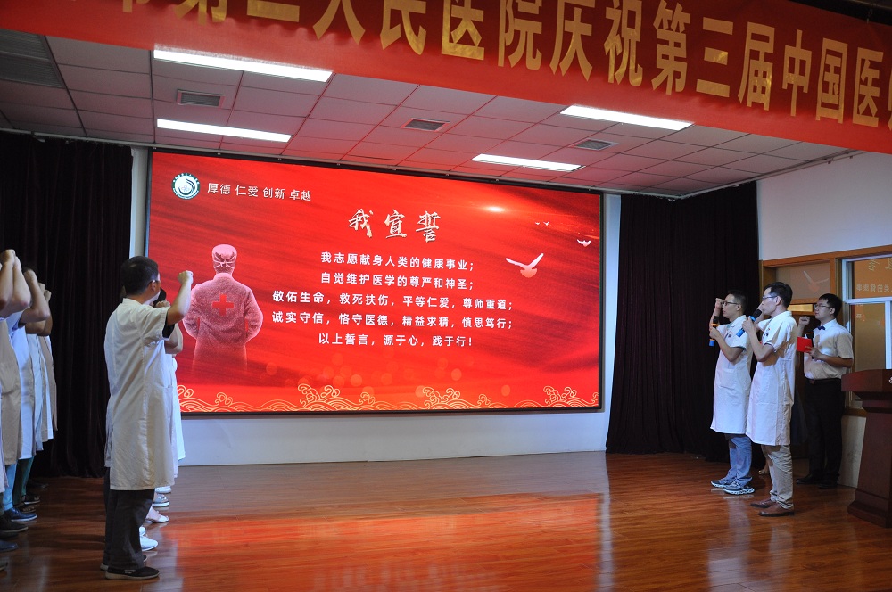 黨委委員、院長(cháng)裴海青為大會(huì )致辭。他希望廣大醫師在今后的工作中,不忘醫者初心,牢記健康使命,在各自專(zhuān)業(yè)領(lǐng)域有所建樹(shù)、有所專(zhuān)長(cháng),做德藝雙馨的醫者,開(kāi)創(chuàng )醫院發(fā)展的新篇章,為人民群眾的健康事業(yè)作出新的更大貢獻。