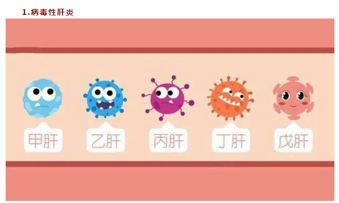 1.肝炎病毒:所有的肝炎病毒都是急性肝衰竭的危險因素,而乙肝、丙肝病毒還有可能產(chǎn)生慢性損傷,導致肝硬化、肝癌。