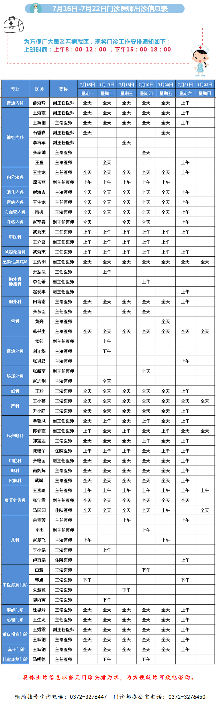 安陽(yáng)市第二人民醫院門(mén)診一周醫師出診信息表